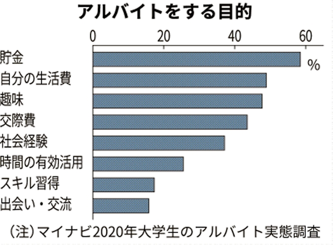 アルバイト目的は貯金 大学生の6割 マイナビ調査 日本経済新聞