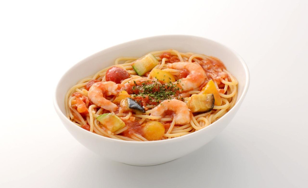 ポッカクリエイト カフェ ド クリエ こんにちは 夏だけの冷製パスタ 海老と夏野菜のトマトソース は 酸味のきいたイタリア産完熟トマトソースと夏野菜が彩り鮮やかな一皿です 週末のランチにいかがでしょうか