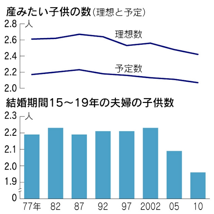 夫婦の子供 初めて2人割る 理想数も最低 日本経済新聞